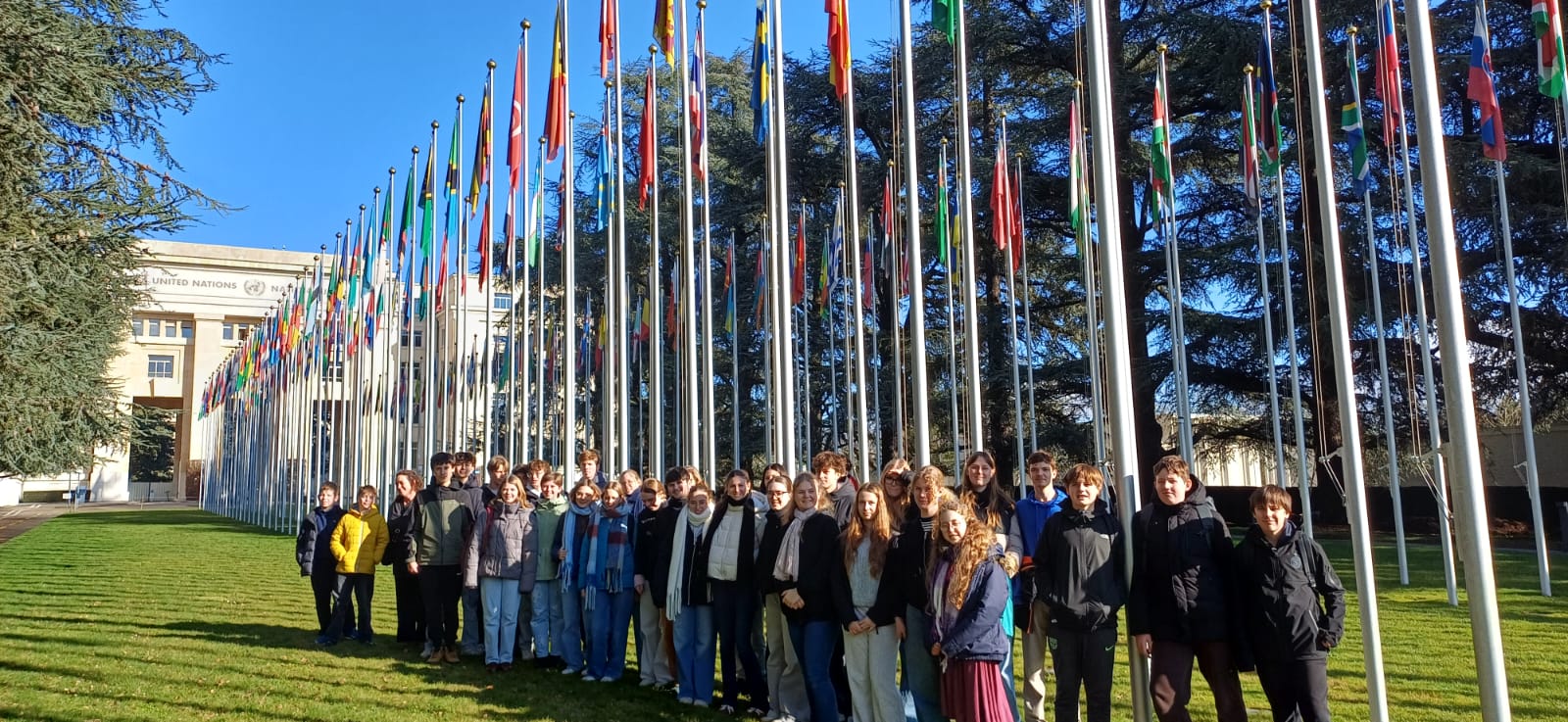 Sous un soleil radieux, l’ensemble du groupe s’est ensuite rendu aux Nations Unies à Genève, où une visite de grande qualité a permis aux élèves de mieux comprendre les enjeux de la coopération internationale. La rencontre s’est conclue par une intervention inspirante en anglais, spécialement adaptée à notre public scolaire, illustrant concrètement les valeurs de paix, de dialogue et d’engagement citoyen portées par l’Europe.