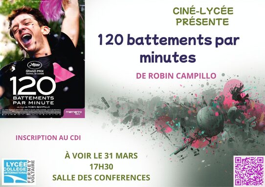 Par ROBIN HOFFMANN, publié le mercredi 18 mars 2026 15:33 - Mis à jour le mercredi 18 mars 2026 15:33diffusion de 120 battements par minute le mardi 31 mars 17h30 salle des conférences -