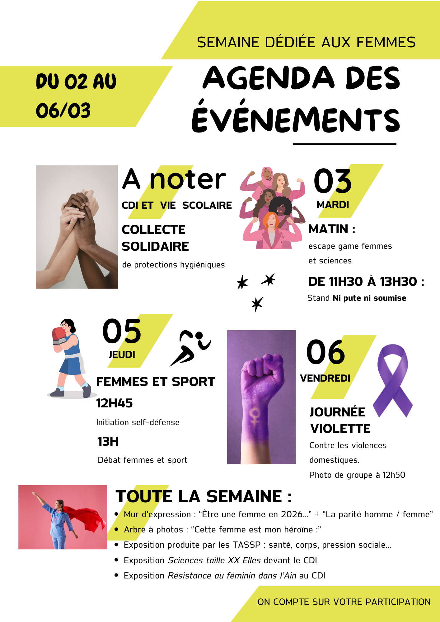 Site de St Genis : programme de la semaine dédiée aux femmes du 2 au 6 mars