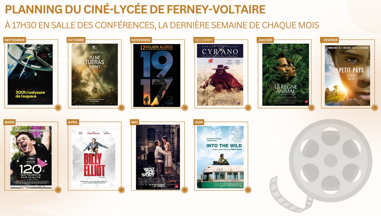 Tous les mois nous vous présentons un film en salle des conférences du site de Ferney-Voltaire à 17h30.